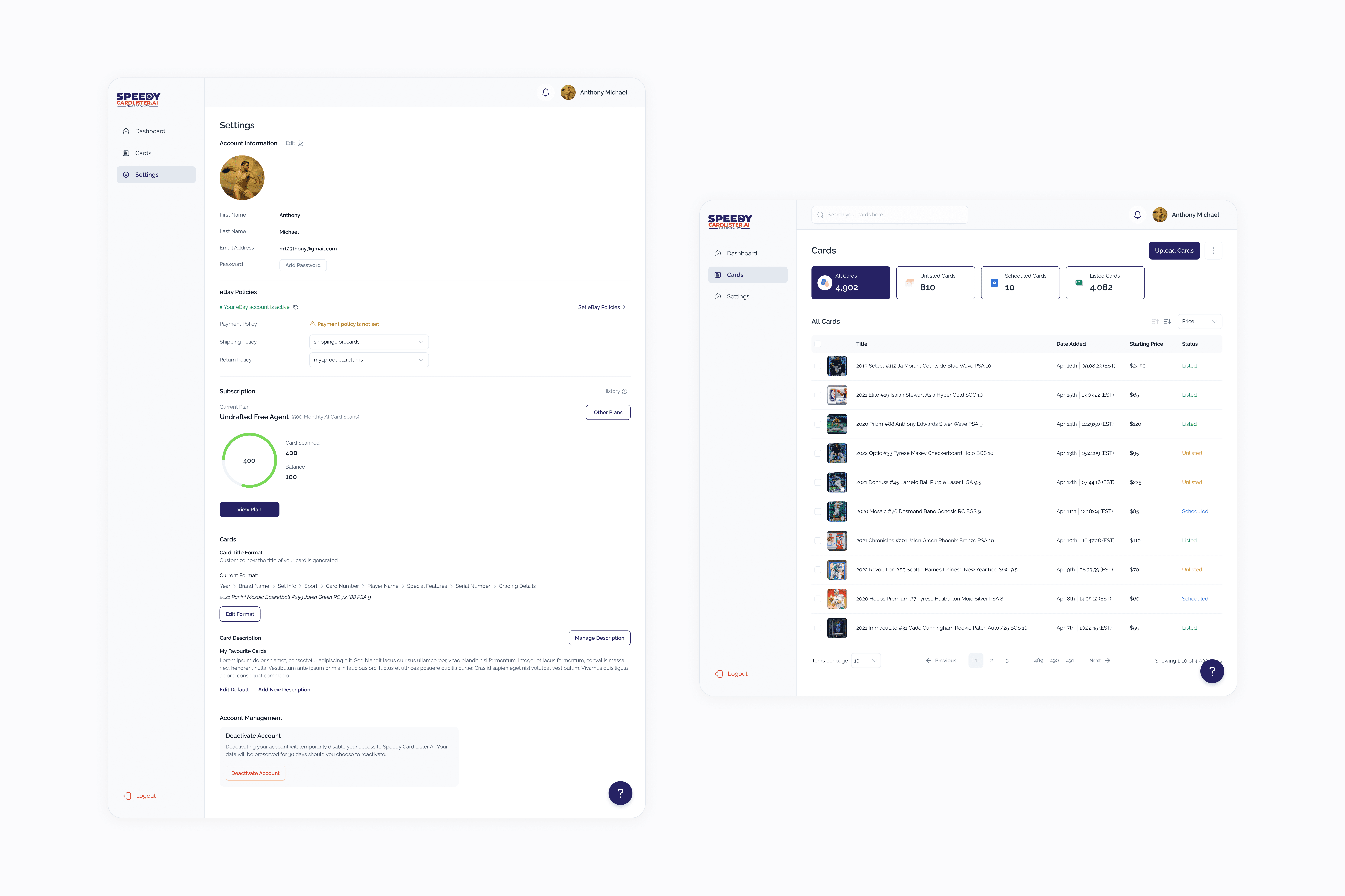 When I joined the Speedy Card Lister AI team, several foundational screens had already been designed. My role was to take those initial layouts and evolve them into a more refined, scalable, and intuitive product experience while also designing entirely new features as the product matured.